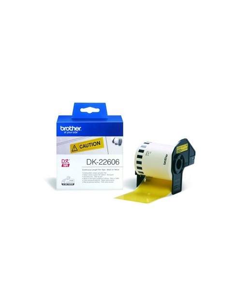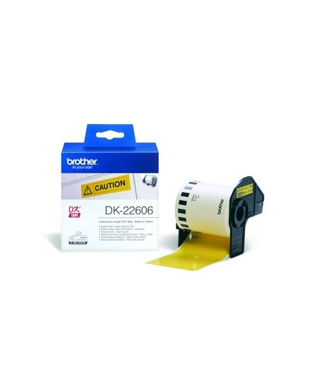 Rolo para criar etiquetas autocolantes de tamanho personalizado. Fita contínua de película plástica (amarela). Largura: 62 mm. Comprimento: 15,24 m¶¶A Fita contínua DK22606 (texto preto sobre fundo amarelo) permite criar etiquetas com tamanhos personalizados. O material é película plástica, mais fino e leve que o papel adesivo convencional. A componente plástica da superfície dá uma resistência maior que às etiquetas de papel e um toque mais suave. O fundo amarelo permite que a informação impressa na etiqueta se destaque mais que num fundo branco. Desenhada para uma identificação temporária, o adesivo foi desenvolvido para evitar que a etiqueta se descole antes do desejado. Se o comprimento da informação a incluir na etiqueta varia, as fitas contínuas são a melhor opção. Pode incorporar de forma rápida e simples: imagens, logotipos, códigos de barras, datas ou qualquer outra informação.¶¶Dispositivos relacionados:¶¶Brother QL-500¶Brother QL-500A¶Brother QL-500BS¶Brother QL-500BW¶Brother QL-500 Series¶Brother QL-550¶Brother QL-560¶Brother QL-560 Series¶Brother QL-560VP¶Brother QL-560YX¶Brother QL-570¶Brother QL-580¶Brother QL-580N¶Brother QL-580 Series¶Brother QL-600¶Brother QL-600B¶Brother QL-600G¶Brother QL-600R¶Brother QL-650TD¶Brother QL-700¶Brother QL-710 Series¶Brother QL-710W¶Brother QL-710WSP¶Brother QL-720NW¶Brother QL-800¶Brother QL-810W¶Brother QL-820NW¶Brother QL-820NWB¶Brother QL-820 Series¶Brother QL-1050¶Brother QL-1050N¶Brother QL-1060N¶Brother QL-1060NX¶Brother QL-1100¶Brother QL-1100NWB¶Brother QL-1100 Series¶Brother QL-1110¶Brother QL-1110NWB