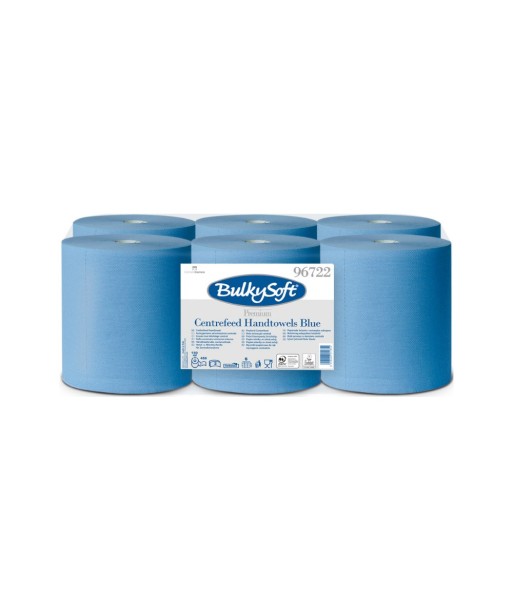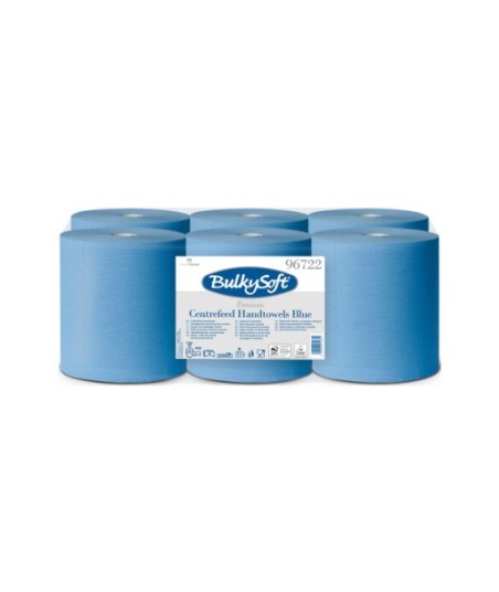Cor: Azul¶Marca BulkySoft¶Qualidade do papel: Celulose¶Folhas: 2¶Micro relevo¶Folhas por rolo: 441 ¶¶Altura do rolo: 190 mm¶Diâmetro do rolo: 190 mm¶Núcleo: removível¶Diâmetro do núcleo: 51 mm¶Comprimento do rolo: 149,94 m¶Embalagens por caixa 6¶¶Certificação: EU Ecolabel, PEFC, Contato Alimentar
