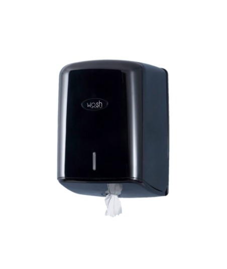 Distribuidor de toalhas de alimentação central, papel entregue pela base.¶Fabricado em ABS preto de alta qualidade e resistência.¶Fechadura com chave, tampa frontal com dobradiças para facilitar a manutenção.¶Necessita de um rolo de papel especial, apoiado lateralmente, sem mandril para entregar pelo centro da base.¶Depois de retirar o mandril, o rolo é colocado sobre o lado plano.¶O papel é distribuído pelo centro do rolo, pela base inferior.¶Acesso fácil e rápido para substituir o rolo existente.¶Para rolos com diâmetro até 205 mm.¶Máxima higiene: só tocamos no papel que utilizamos.¶Fácil de limpar e manter, longa duração.¶Ideal para locais com grande afluência de pessoas.¶Especialmente recomendado para colectividades, hotéis, bares, restaurantes, escritórios, hospitais, clínicas, etc.¶Indicador de nível.¶¶Altura 355 mm¶Largura 240 mm¶Profundidade 245 mm¶Peso 0,915 kg¶¶! Consumíveis compatíveis:¶#6531036 - Rolo Toalhas Mão 175mx20cm 16,5g 2Fls Amoos Picotado 6un ¶#6531058 - Rolo Espiral 280mx19,2cm 23g 1Fl Amoos Picotado 6un ¶#6531065 - Rolo Espiral 125mx17,9cm 17,5g 2Fls PAPERNET Picotado 6un ¶#6531067 - Rolo Espiral 285mx19,2cm 20,5g 1Fl PAPERNET Picotado 6un ¶#6531060 - Rolo Espiral 100mx17,9cm 17,5g 2Fls PAPERNET Picotado 6un ¶#6531064 - Rolo Espiral 140mx19,2cm 17,5g 2Fls PAPERNET Picotado 6un