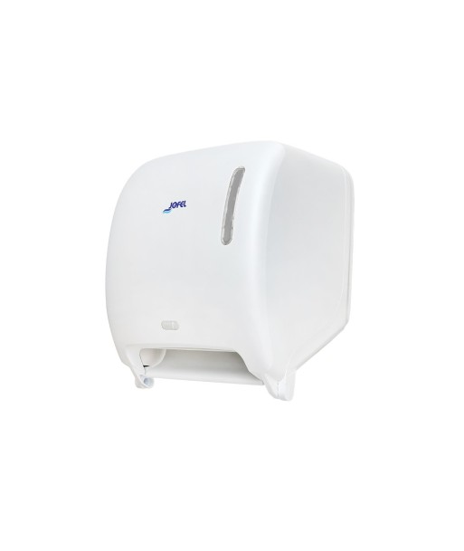 DISPENSADOR GAMA TIMELESS BRANCO MATE¶¶Dispensador de rolos de toalhas com sensor óptico.¶Fabricado em plástico branco 50% reciclado certificado e 50% ABS de alta qualidade e resistência.¶Fechadura com chave, indicador de nível e tampa frontal articulada.¶Sistema de abertura dupla.¶O sensor duplo ativa-se automaticamente ao aproximar as mãos e fornece papel se não houver papel disponível. Pode fornecer 24 ou 36 cm, dependendo do programa escolhido.¶Funciona com pilhas e alimentação elétrica.¶Mecanismo interno em ABS branco de alta qualidade.¶Cortador interno em aço, completamente protegido, de difícil acesso pelo exterior.¶Adequado para rolos de até 220 mm Ø e mandril de Ø 45 mm.¶Economia de papel, pois a quantidade fornecida é controlada.¶Mecanismo interno simples e de fácil acesso.¶Recarga rápida e fácil.¶Fácil de manter e limpar.¶Ideal para locais com alto tráfego de pessoas.¶Particularmente recomendado para coletividades, escritórios, hospitais, clínicas, etc.¶Pilhas (4 x LR20) (não incluídas).¶Ligação à rede eléctrica (100-277V) por cabo jack de 5,5 mm.¶Medidas: 362 x 309 229mm¶¶Inclui: 1 chave magnética, 3 fichas, 3 parafusos