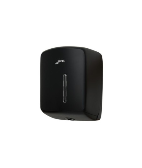 DISPENSADOR DE TOALHAS CENTREFEED (CAIXA) GAMA TIMELESS MATE¶¶Dispensador de toalhas de alimentação central, papel fornecido pela base.¶Feito de plástico reciclado certificado preto 50% e 50% ABS.¶Fechadura com chave, tampa frontal articulada para fácil manutenção.¶Sistema de abertura dupla¶Requer rolo de papel especial, apoiado pela lateral, sem mandril para fornecimento pelo centro da base.¶Após a remoção do mandril, o rolo é colocado sobre o lado plano.¶O papel é dispensado pelo centro do rolo, pela base inferior.¶Acesso fácil e rápido para substituir o rolo existente.¶Para rolos com diâmetro de até 205 mm.¶Máxima higiene: tocamos apenas no papel que usamos.¶Fácil de limpar e manter, longa vida útil.¶Ideal para locais com alto tráfego de pessoas.¶Particularmente recomendado para coletividades, hotéis, bares, restaurantes, escritórios, hospitais, clínicas, etc.¶Indicador de nível.¶Inclui um dispensador para controle de consumo.¶Medidas: 323 x 228 x 223 mm¶¶Inclui: 1 ferramenta, 3 fichas, 3 parafusos