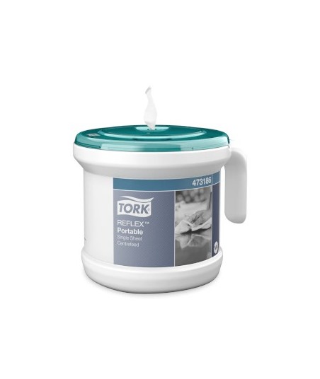 O Tork Reflex Dispensador Portátil de Alimentação Central Folha a Folha é a solução ideal para limpar mãos e superfícies em ambientes profissionais em movimento. ¶Este sistema fácil de usar, higiénico e duradouro reduz o consumo até 37% comparativamente ao sistema de alimentação central Tork®. ¶¶Ideal para utilização em hotelaria, limpezas a contrato e outros ambientes móveis. ¶A pega robusta significa que é fácil de transportar ou anexar a um carrinho de limpeza, para que o papel esteja sempre disponível. ¶É fornecido com 1 rolo Reflex de alimentação central de 2 folhas.¶¶Reduz os riscos de contaminação porque os utilizadores apenas tocam naquilo que usam¶O design robusto é criado para suportar os ambientes mais exigentes¶Rolo totalmente fechado - protegendo-o de salpicos e sujidade¶O indicador de papel esgotado significa que nunca ficará sem papel¶¶Sistema M4¶¶Dimensões:¶Largura: 266 mm¶Altura: 220 mm¶Profundidade: 225 m ¶¶Toalhas compatíveis:¶#653473412 - Rolo Toalhas Mão 114mx18cm 1Fl Picotado TORK M4 6un ¶#65396722 - Rolo Toalhas Mão Azul 150mx19cm 2Fls BulkySoft Picotado-6un¶¶