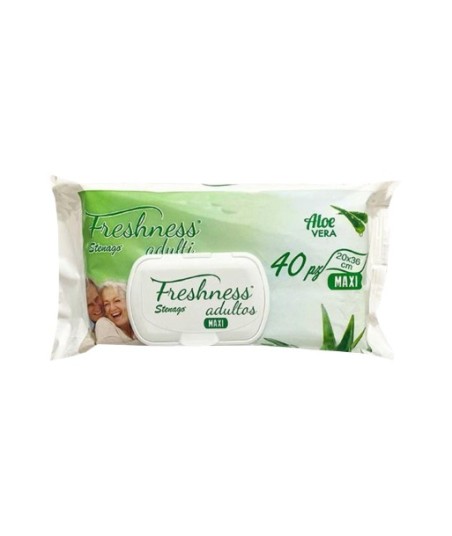 O Papel Higiénico humedecido Freshness possui todas as vantagens do papel higiénico tradicional, mas oferece também uma sensação de frescor e de higiene devido ao líquido perfumado com Aloe Vera¶¶O tecido macio é biodegradável¶Testado Dermatologicamente¶¶Toalhitas Húmidas: 40¶Tamanho: Maxi¶