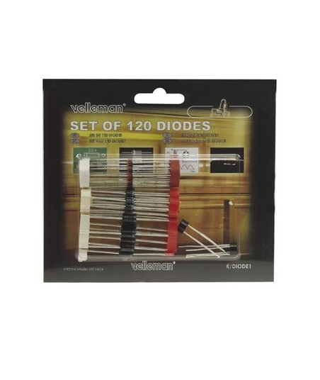 Quantidade: 120 peças¶¶Conteúdo:¶2x Ponte Retificadora W10G¶50x 1N4007¶50x 1N4148¶14x 1N5408¶4x 6A6¶¶Tipo de embalagem: Blister cartão¶