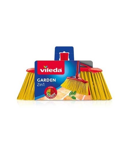 A vassoura Vileda Exteriores 2 em 1 é especifica para a limpar os seus pavimentos de exterior. ¶Esta vassoura possui cerdas rígidas que lhe permitem varrer desde folhas a pequenas pedras!¶¶FIBRAS 2 EM 1¶A combinação perfeita entre dois tipos de fibras:¶1. Cerdas vermelhas menos densas mas duras para varrer partículas de maior dimensão ¶2. Cerdas amarelas mais densas e flexíveis para varrer as partículas mais pequenas.¶¶LIMPEZA EXTERIOR¶As suas cerdas permitem limpar todo o tipo de pavimentos de exterior como tijoleira, cimento, terra ou vegetação.¶Pode ser utilizada tanto em limpeza a seco como a molhado.¶¶ELEVADA EFICÁCIA¶Vassoura multifunções que varre totalmente o seu chão, pois toda a sua superfície da vassoura entra em contacto com o pavimento. ¶Cerdas angulares para aceder e limpar os cantos.¶¶As fibras da vassoura para exteriores são ideais para limpar quer as áreas exteriores de sua casa como pátios e varandas mas também áreas como garagens e jardins.¶Não procure mais e experimente a vassoura Exteriores 2 em 1 da Vileda!