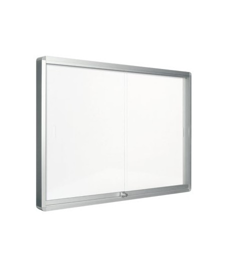 Ideal para realçar e proteger os avisos importantes. ¶Portas de vidro com fechaduras.¶Permite expor até 12 x A4¶¶Vitrine 967x926mm de Interior com portas de correr em alumínio¶Fundo lacado magnético 967x926mm ¶Medida Interior 931X890mm¶