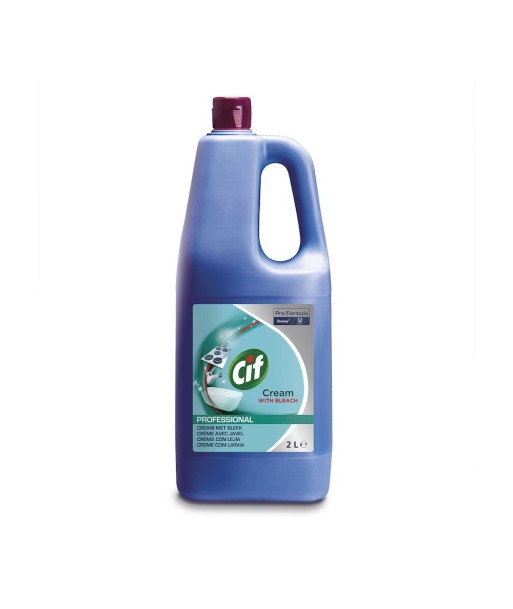 Cif Pro Formula Creme Lixívia 2L - Creme de limpeza com lixívia e micropartículas¶¶É um creme de limpeza com micropartículas para as mais difíceis tarefas de limpeza das casas de banho, áreas comuns ou mesmo cozinhas.¶Remove gorduras, sujidades, calcário, oxidação, bolor e manchas, deixando as superfícies limpas e brilhantes.¶Suave para superfícies laváveis incluindo esmalte, aço inox e vitrocerâmica (após arrefecimento).¶¶Indicado para limpezas difíceis:¶Com manchas persistentes¶Bolor e calcário¶Placas de vitrocerâmica¶¶Instruções de utilização: Aplicar diretamente sobre as superfícies com uma esponja/pano húmido, limpar e enxaguar.