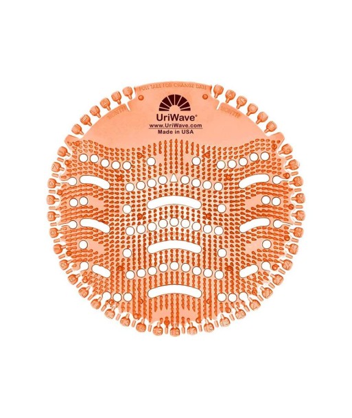 Tapete Rede Ambientador para Urinol UriWave - Mango¶¶UriWave tapete rede ambientador para urinol super perfumada da UriWave é a solução perfeita, simples e económica para os problemas de maus odores nas casas de banho dos homens.¶É um produto higienizante e desodorizante para urinóis muito eficaz para qualquer setor da higiene profissional, como as casas de banho de discotecas, bares, estações de comboio, centros comerciais, empresas, etc.¶¶PERFORMANCE PATENTEADA¶O UriWave liberta 2x mais fragrância que os seus concorrentes, criando um ambiente fresco por mais de 30 dias.¶¶NOVO DESIGN¶Design revolucionário flexível e translúcido permitindo a total visualização do urinol e assegura o escoamento fácil da urina. A parte superior do disco é composta por vários picos que permitem reduzir os salpicos enquanto liberta fragrância e bactérias¶¶RELEMBRA-LHE QUANDO O DEVE SUBSTITUIR¶Possui um sistema fácil para o relembrar de o substituir, bastando para isso remover o número ou a letra da semana e mês em que deve ser substituído¶¶MODO DE UTILIZAÇÃO¶Retirar o tapete de urinol do plástico protetor e colocar diretamente no centro do urinol onde pretende atingir o efeito desejado.¶¶AMIGO DO AMBIENTE¶100% reciclável¶Não polui nem se dissolve com a água¶¶Fragância: Manga