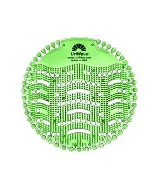 Tapete Rede Ambientador para Urinol UriWave - Pepino Melão¶¶UriWave tapete rede ambientador para urinol super perfumada da UriWave é a solução perfeita, simples e económica para os problemas de maus odores nas casas de banho dos homens.¶É um produto higienizante e desodorizante para urinóis muito eficaz para qualquer setor da higiene profissional, como as casas de banho de discotecas, bares, estações de comboio, centros comerciais, empresas, etc.¶¶PERFORMANCE PATENTEADA¶O UriWave liberta 2x mais fragrância que os seus concorrentes, criando um ambiente fresco por mais de 30 dias.¶¶NOVO DESIGN¶Design revolucionário flexível e translúcido permitindo a total visualização do urinol e assegura o escoamento fácil da urina. A parte superior do disco é composta por vários picos que permitem reduzir os salpicos enquanto liberta fragrância e bactérias¶¶RELEMBRA-LHE QUANDO O DEVE SUBSTITUIR¶Possui um sistema fácil para o relembrar de o substituir, bastando para isso remover o número ou a letra da semana e mês em que deve ser substituído¶¶MODO DE UTILIZAÇÃO¶Retirar o tapete de urinol do plástico protetor e colocar diretamente no centro do urinol onde pretende atingir o efeito desejado.¶¶AMIGO DO AMBIENTE¶100% reciclável¶Não polui nem se dissolve com a água¶¶Fragância: Pepino Melão