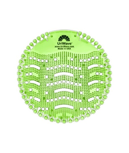 Tapete Rede Ambientador para Urinol UriWave - Hortelã¶¶UriWave tapete rede ambientador para urinol super perfumada da UriWave é a solução perfeita, simples e económica para os problemas de maus odores nas casas de banho dos homens.¶É um produto higienizante e desodorizante para urinóis muito eficaz para qualquer setor da higiene profissional, como as casas de banho de discotecas, bares, estações de comboio, centros comerciais, empresas, etc.¶¶PERFORMANCE PATENTEADA¶O UriWave liberta 2x mais fragrância que os seus concorrentes, criando um ambiente fresco por mais de 30 dias.¶¶NOVO DESIGN¶Design revolucionário flexível e translúcido permitindo a total visualização do urinol e assegura o escoamento fácil da urina. A parte superior do disco é composta por vários picos que permitem reduzir os salpicos enquanto liberta fragrância e bactérias¶¶RELEMBRA-LHE QUANDO O DEVE SUBSTITUIR¶Possui um sistema fácil para o relembrar de o substituir, bastando para isso remover o número ou a letra da semana e mês em que deve ser substituído¶¶MODO DE UTILIZAÇÃO¶Retirar o tapete de urinol do plástico protetor e colocar diretamente no centro do urinol onde pretende atingir o efeito desejado.¶¶AMIGO DO AMBIENTE¶100% reciclável¶Não polui nem se dissolve com a água¶¶Fragância: Hortelã